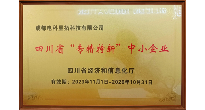 近日,四川省经济和信息化厅为电科开云·Kaiyun正式颁发2023年度四川省专精特新中小企业牌匾,标志着电科开云·Kaiyun在工信部优质中小企业梯度培育进程中,再上一个新台阶!